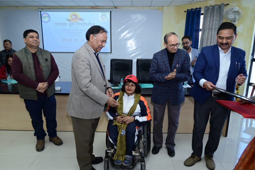 हल्द्वानी। उत्तराखंड मुक्त विश्वविद्यालय हल्द्वानी के दिव्यांग प्रकोष्ठ , विशेष शिक्षा विभाग एवं समान अवसर अनुभाग द्वारा “हौसलों की उड़ान” विषय पर एक दिवसीय कार्यक्रम विश्वविद्यालय सभागार में आयोजित किया गया।